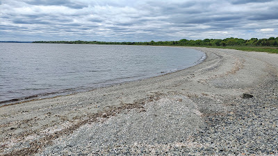 From there it was onto the trails, which for most of our trek consisted of wide grassy double-track trails mowed periodically by local volunteers. We started off on the Buzzy Rice Trail, and then followed the Diamond Trail and Bob Clachrie trails southbound, with a stop in the middle at 17th century Baker Farm. Next, it was a short walk through the "Crows Nest" up to the very attractive Sandy Point Lighthouse, where people had left hundreds of kindness stones along its walls.